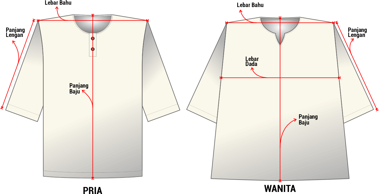 Ini cara ukur yang mudah. Ukur dari kemeja yang paling nyaman dipakai Kemudian ukur sesuai panduan di bawah ini.